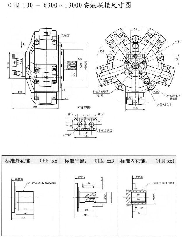 Type OHM | Displacent(ml/r) | 額定壓力 | 最高壓力 | 額定扭矩 | 單位理論扭矩 | Sped ange(r/min) | Weight(kg) |